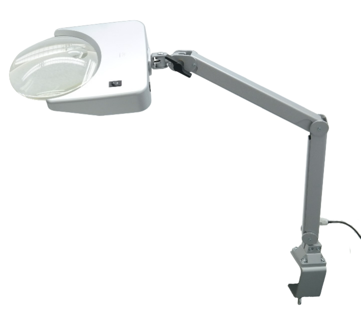 Die Lupenleuchten der Tech-Line Serie bieten vorne offene kratzfeste Glaslinsen, die eine sehr komfortable Arbeitshaltung ermöglichen. Dies ist möglich, da das Sehfeld nicht durch einen Rand am Lupenkopf eingeengt wird. Auch eine Betrachtung an der Linse vorbei (Umfeld Orientierung) ist problemlos möglich.