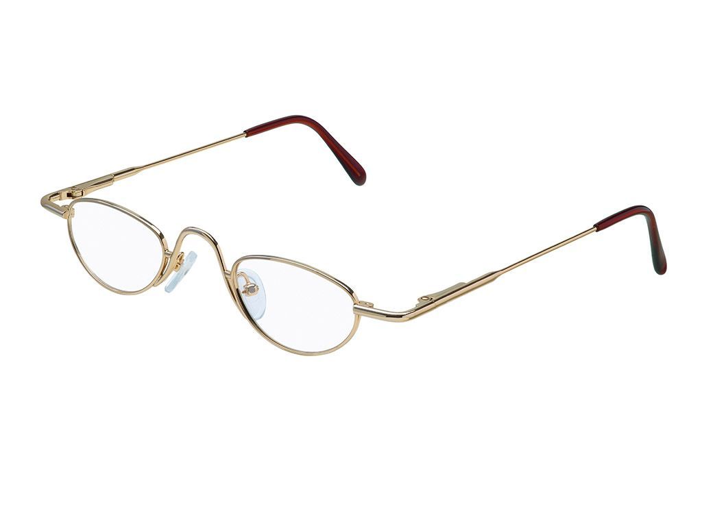 Die kleine und überaus handliche binokulare, prismatische Lupenhalbbrille ist in zeitlosem Design in den zwei Farbvarianten Gold glänzend und Antik-Silber erhältlich.